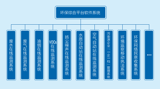目前已研發(fā)廢水在線監(jiān)測(cè)系統(tǒng)、廢氣在線監(jiān)測(cè)系統(tǒng)、油煙在線監(jiān)測(cè)(監(jiān)控)系統(tǒng)、VOCs在線監(jiān)測(cè)系統(tǒng)、揚(yáng)塵噪聲在線監(jiān)測(cè)系統(tǒng)、水質(zhì)自動(dòng)站在線監(jiān)測(cè)系統(tǒng)、空氣自動(dòng)站在線監(jiān)測(cè)系統(tǒng)、污染源企業(yè)“一企一檔”管理系統(tǒng)、環(huán)境監(jiān)察移動(dòng)執(zhí)法系統(tǒng)、環(huán)保網(wǎng)絡(luò)民意收集系統(tǒng)等多個(gè)應(yīng)用子系統(tǒng)。
